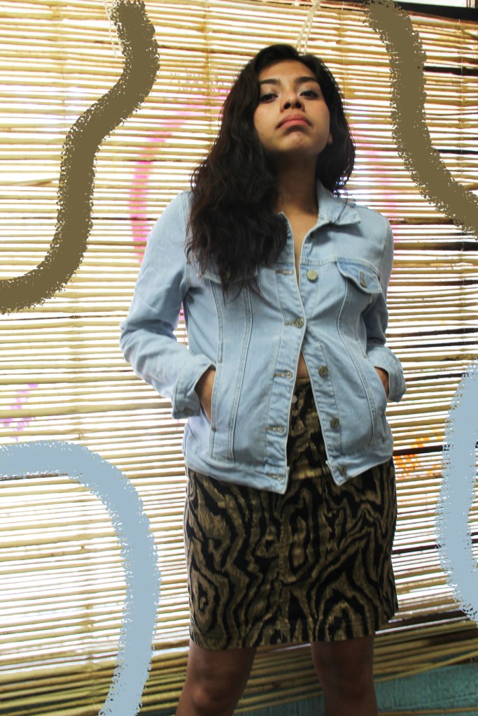 La primera idea es esta falda con estampado de animal print que llega arriba a las rodillas, es perfecta para el calor y la puedes combinar con una chamarra de mezclilla como la de las fotos, incluso puedes desabrochar algunos botones para darle un toque sexy a tu outfit. Una blusa lisa de un solo color también es una buena opción para combinar.