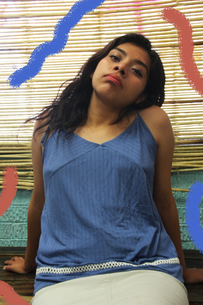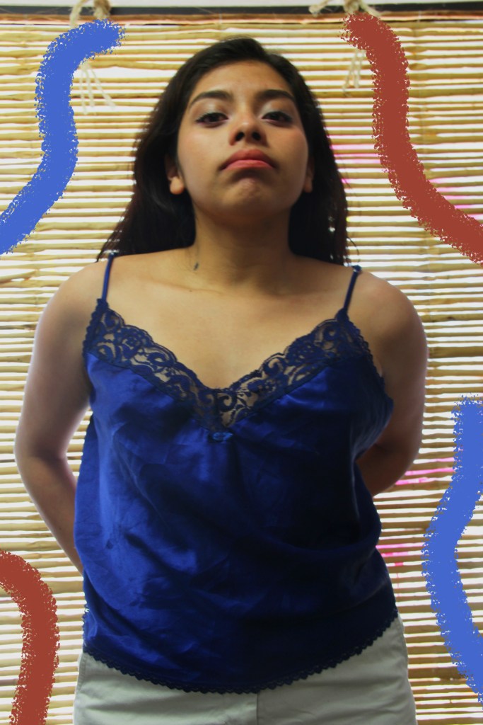 El tercer outfit es muy fresco, perfecto para los días calurosos. Se trata de una blusa de tirantes, como puedes ver en las fotos es de un color azul vibrante que logra acompañar perfectamente la falda blanca del segundo outfit o con unos shorts o jeans negros.